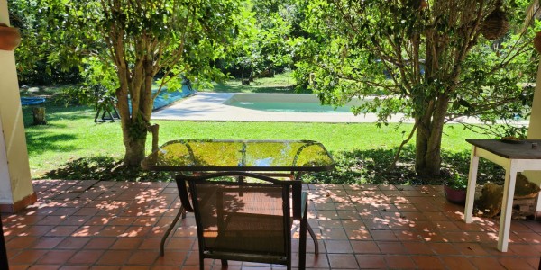 Galeria semicubierta con hermosa vista al parque y pileta de material, amplio lavadero exterior cubierto.