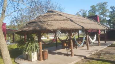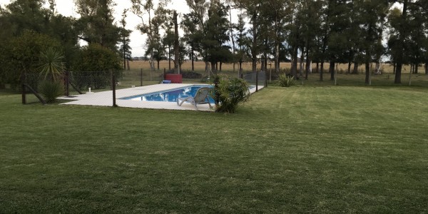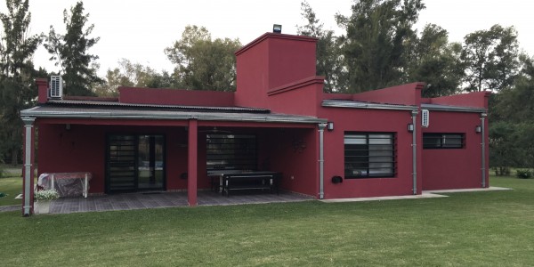 Excelente casa desarrollada en una planta a pocos metros del campo de golf, que cuenta con una luminosa cocina con espacio para lavavajillas, integrada a living – comedor con salida a una hermosa galeria semi cubierta, baño completo, dormitorio principal con amplio placard, segunda habitacion de 4×3 y una tercera habitación, deposito con acceso exterior , baño exterior – lavadero. Quincho con techo de pajas con parrilla, bacha de lavado con agua caliente, y lugar de guardado. Piscina de 12 x 5 con 2 mts de playa húmeda con solárium de piso atérmico y alambrado perimetral. Hermosa vista al campo.