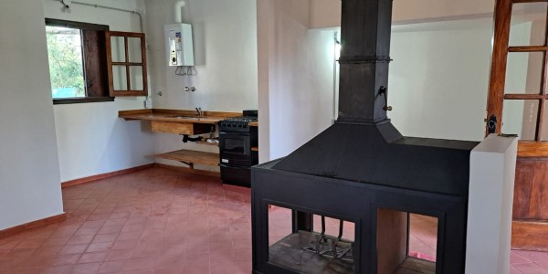 Solida casa reciclada a nueva en Club de campo El Moro, ubicada en zona central, a pocos metros de la entrada al barrio y del Club House. Cuenta con cocina integrada a estar – comedor con salamandra, pequeño living en desnivel, baño con antebaño, dos habitaciones con placard.