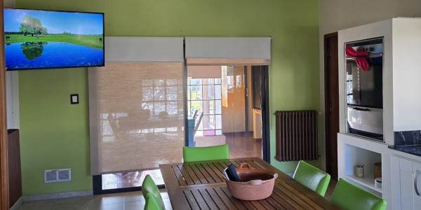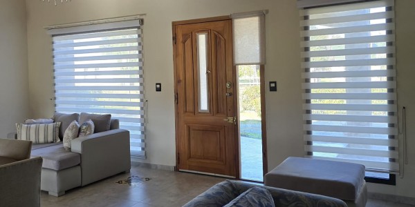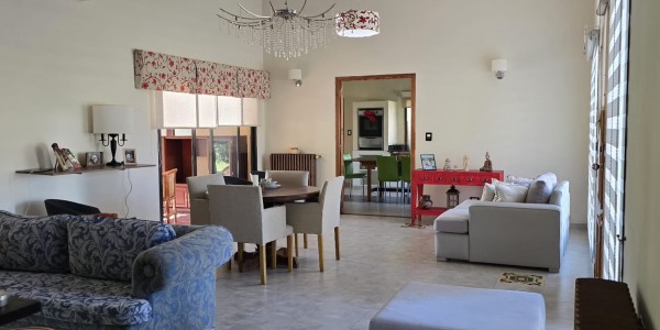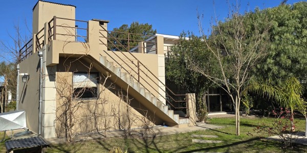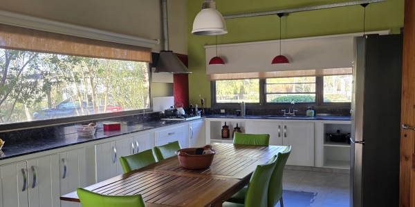 Moderna y solida casa construida sobre un lote de 1940 m2 parquizado. Todos sus ambientes son amplios y luminosos, con aberturas de calidad y pisos de porcelanato. Se ingresa por su entrada principal a living – comedor vidriado con conexión al jardín de invierno con salida al exterior; gran cocina con comedor diario totalmente amoblada con acceso a sector de parrilla, lavadero, deposito y segundo baño. En su otra ala nos encontramos con el baño principal con hidromasaje, gran habitación principal con hermosa vista al parque y vestidor con puerta de madera corrediza.
