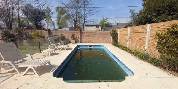 Hermosa casa implantada sobre amplio lote en esquina, a pocas cuadras del centro de Marcos Paz. En planta baja cuenta con cocina integrada a living – comedor, y lavadero; en planta alta tiene cuatro habitaciones, y baño completo. Cochera cubierta y semicubierta. Quincho con parrilla, y cocina. Pileta con solarium atermico y protección para niños y mascotas. Todo el lote se encuentra perimetrado con medianera de ladrillo.